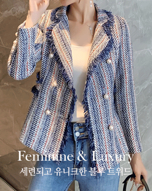 러브미 진주버튼 수술카라 블루 트위드 자켓