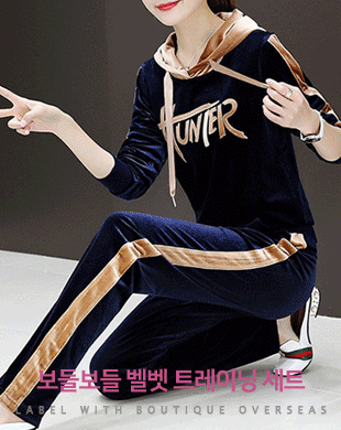 무료배송 / [3XL까지] 오스테 배색라인 벨벳 후드 트레이닝