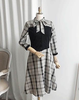 - [2XL까지] 델마 리본 체크 플레어 원피스 / 블라우스원피스, 명품스타일, 하객원피스, 데일리원피스, 99사이즈, 2XL 원피스, 3XL, 오피스원피스, 빅사이즈원피스, 데일리원피스, 오피스원피스, 중년여성원피스, 40대여성,