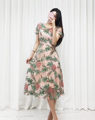 - [2XL까지] 프라하 플라워 핑크 롱원피스 / 셀럽원피스, 빅사이즈원피스, 하객원피스, 명품스타일, 청담동며느리, 하객룩, 99사이즈, 오피스원피스, 모임룩, 중년여성원피스, 40대원피스, 하객룩, 중년여성원피스, 여름원피스