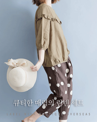 - 유키 리넨 블라우스 도트 팬츠 세트