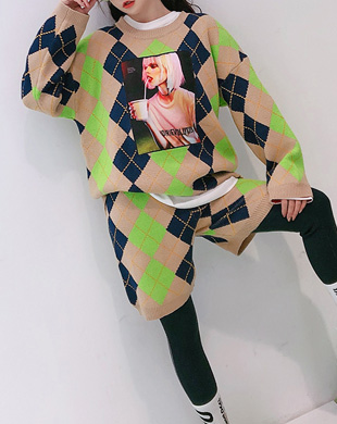 - 플리오 아가일 니트탑 팬츠 이지룩 세트 / 수입보세여성의류, 오버사이즈원피스, 박시원피스, 루즈핏원피스, 수입보세여성의류, 수입원피스, 데일리원피스, 롱니트원피스, 미시원피스, 명품스타일 수입보세