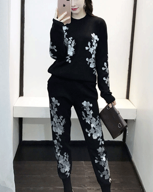 - 비앙마르 꽃 스팽글 니트 트레이닝 세트 / 명품수입보세, 수입보세여성의류, 니트팬츠, 이지룩, 청담동며느리, 니트트레이닝, 공항패션, 40대원피스, 미시원피스, 수입여성의류, 오피스의류, 중년여성원피스, 모임룩