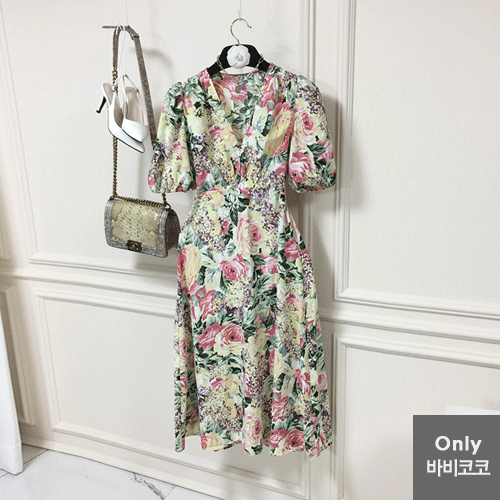 마르세유 로즈가든 브이넥 밴딩 롱원피스