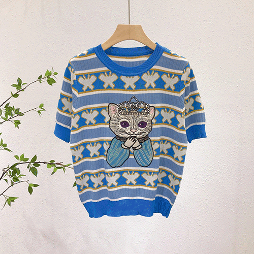 국내배송 / 로텐샤 블루 야옹이 유니크 니트탑