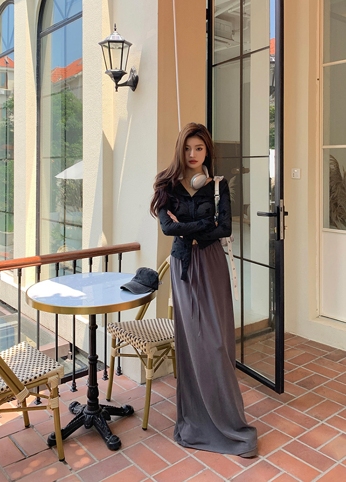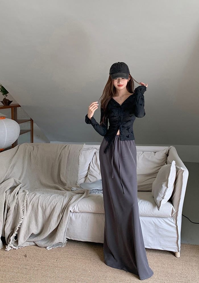 SIZEFree 55~66 : 가슴 72 / 총길이 47 cmFABRIC폴리에스테르신축성있음 / 비침약간 / 두께감보통초반 드라이클리닝 권장