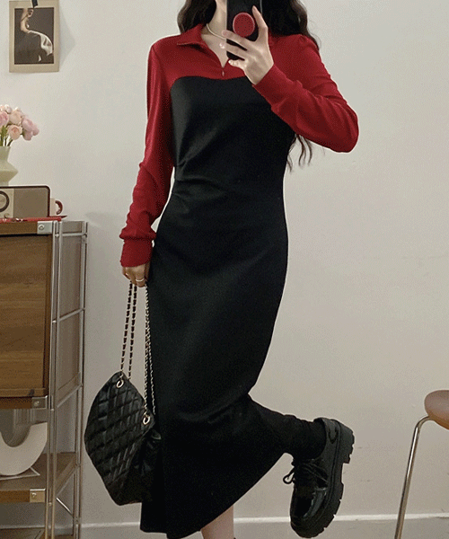 - 길이 선택 가능 / 커먼 하프 집업 배색 원피스 - 빅사이즈까지( 리뷰 : 0 )