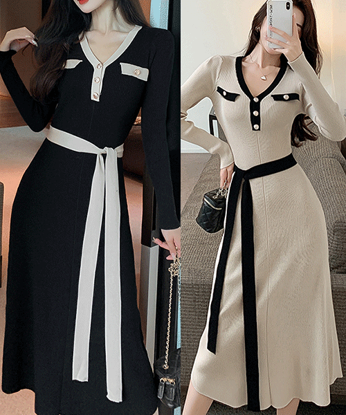 - 로빈느 세로골지 금장 브이넥 니트롱원피스( 리뷰 : 0 )