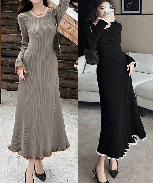 - 로로베 브이넥 프릴 골지 니트 원피스( 리뷰 : 0 )