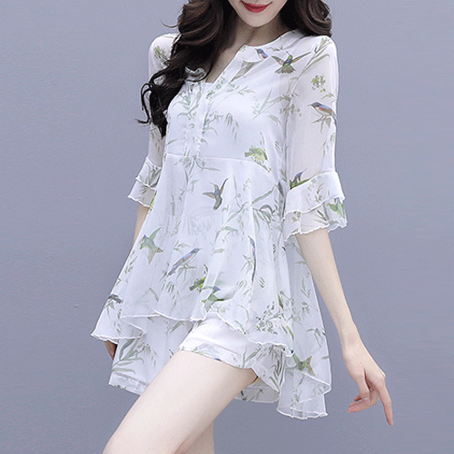 - 무료배송 / 마틸라 하늘하늘 쉬폰 블라우스 반바지 세트 3XL까지( 리뷰 : 0 )
