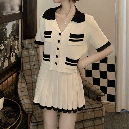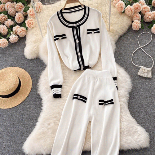 - 무료배송 / 샤네뜨 블랙앤 화이트 배색 가디건 니트 팬츠 세트( 리뷰 : 0 )