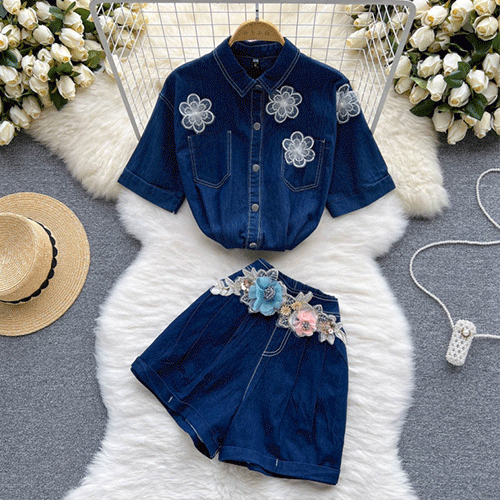 - 델피 꽃분이 데님 셋업 투피스 세트( 리뷰 : 0 )