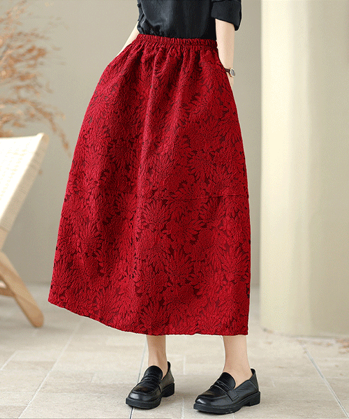 - 하론 자카드 밍크 기모 안감 밴딩 롱스커트( 리뷰 : 0 )