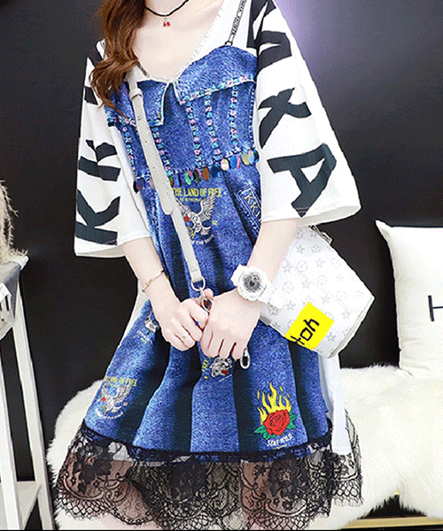 - 로드니 페이크 데님 프린팅 박시 원피스( 리뷰 : 0 )