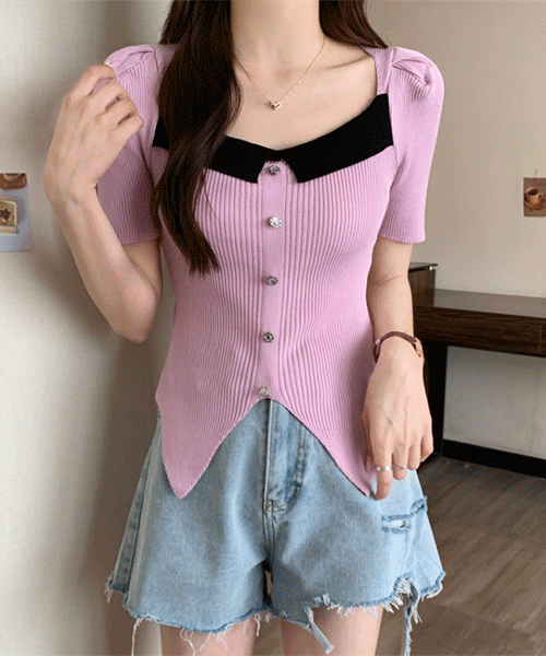 - 디트리 꽃버튼 카라 반팔 니트( 리뷰 : 0 )