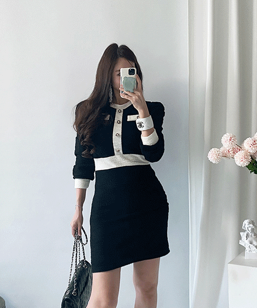 - 맨디 배색 브이넥 니트 원피스( 리뷰 : 0 )