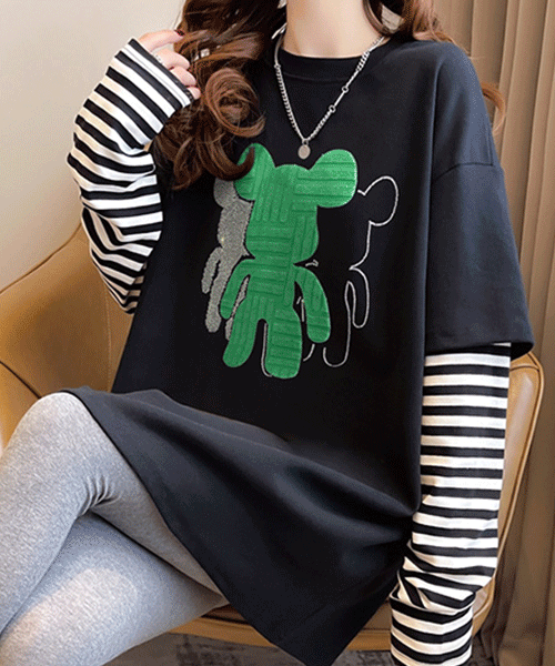 - 기모기모 / 베어브릭 레이어드 기모 박시 데일리티셔츠( 리뷰 : 0 )