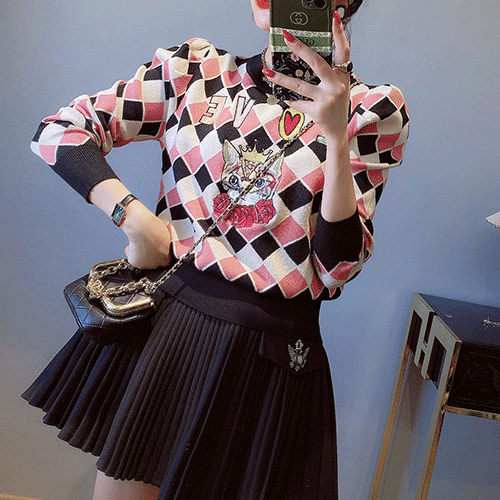 - 핑크러브 체크패턴 니트( 리뷰 : 0 )