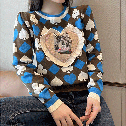 - 슬픈냥이 블루 패턴 니트( 리뷰 : 0 )