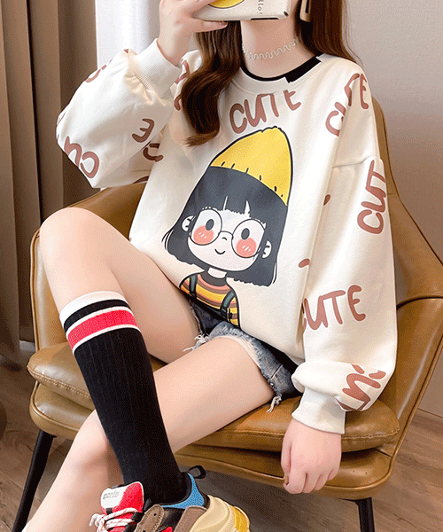 - 기모맛집 / 삼각김밥소녀 러블리 기모 오버핏 맨투맨( 리뷰 : 0 )
