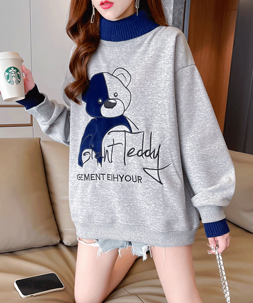 - 기모맛집 / 테디 베어영문 러블리 오버핏 기모 맨투맨 티셔츠( 리뷰 : 0 )