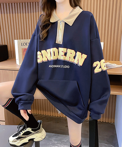- 기모기모 / 이벤 집업카라 영문 박시 기모 티셔츠( 리뷰 : 0 )