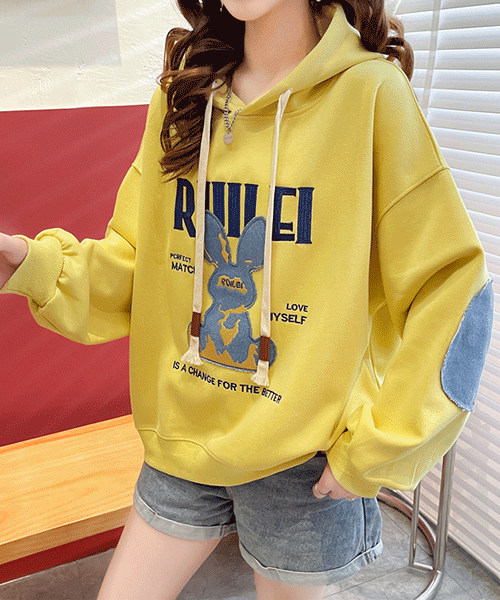 - 기모기모 / 청청토끼 데님 배색 기모 후드 맨투맨티셔츠( 리뷰 : 0 )
