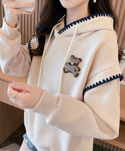 - 기모기모 / 격자 자가드 후드 기모 맨투맨 티셔츠( 리뷰 : 0 )