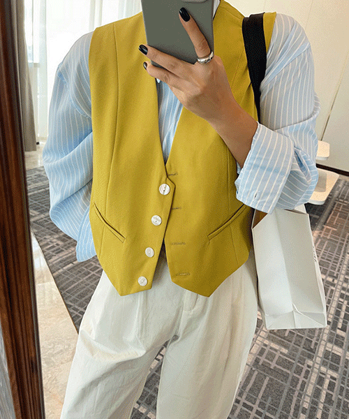 - 안젤라 큐빅 프릴 포켓 심플 롱 조끼 베스트( 리뷰 : 0 )
