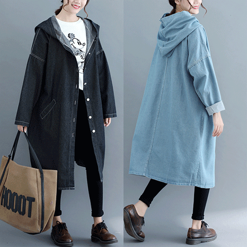 - 국내배송 / 카메 오버핏 데님 후드 바바리( 리뷰 : 0 )