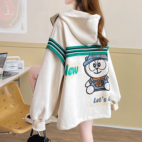 - 어부바 아기곰 패턴 오버핏 후드 점퍼( 리뷰 : 0 )