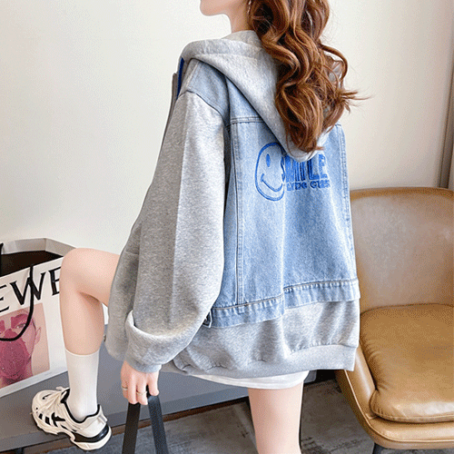 - 해피 오버핏 데님 배색 후드 점퍼( 리뷰 : 0 )