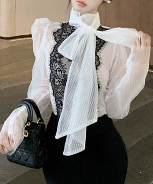 - 프랑수아 빅리본 볼륨 소매 시스루 블라우스( 리뷰 : 0 )