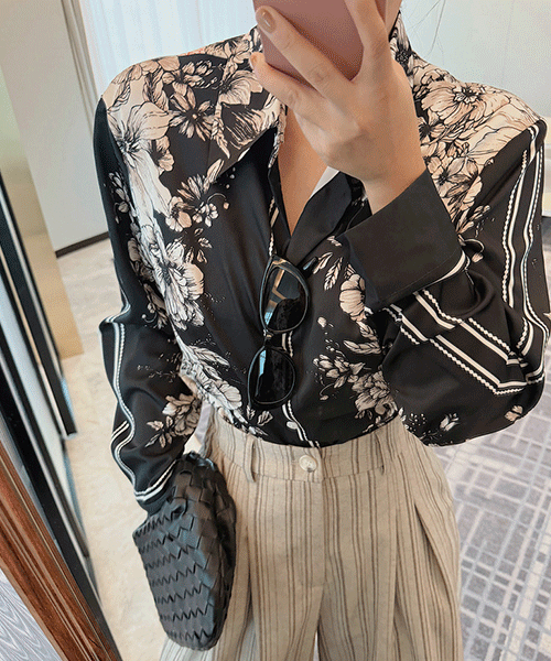 - 로이베 플로럴 새틴 루즈핏 셔츠 블라우스( 리뷰 : 0 )