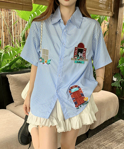 - 옥스포드 큐티 자수 스트라이프 루즈핏 셔츠( 리뷰 : 0 )