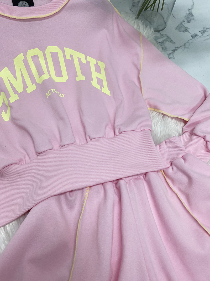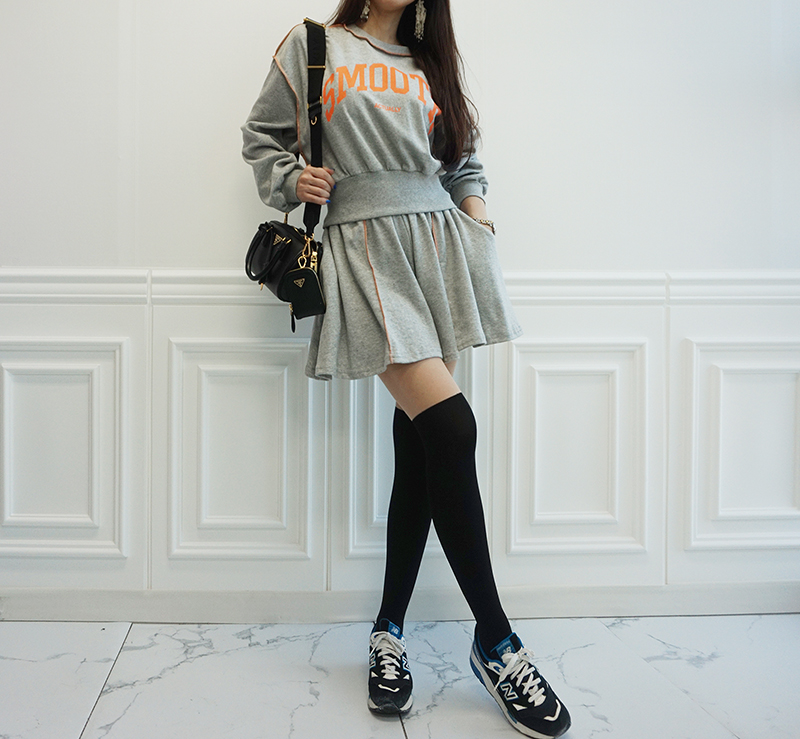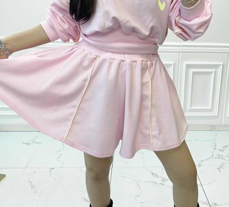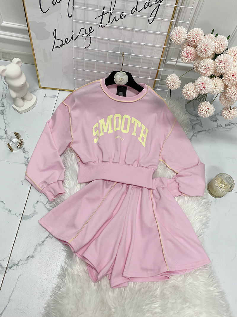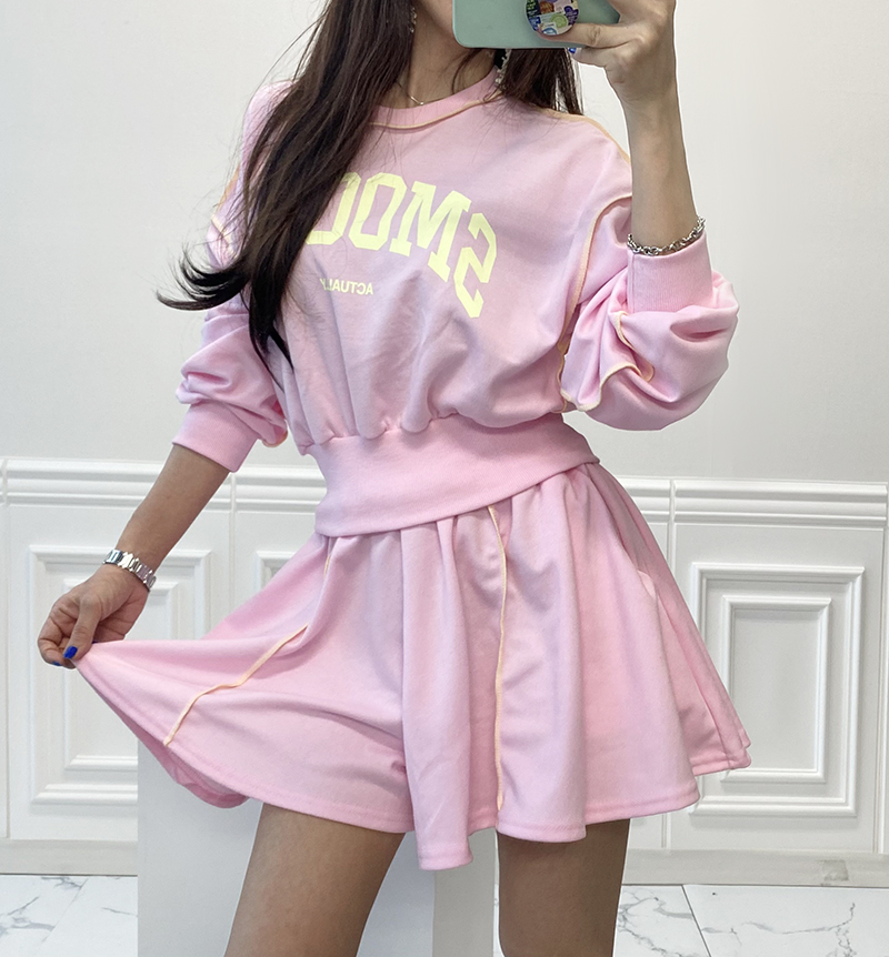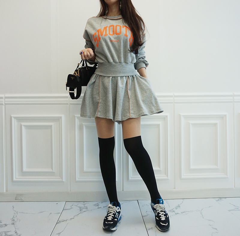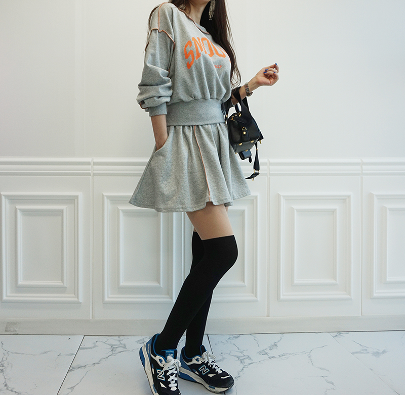 비비드 컬러 레터링 맨투맨 치마바지 세트예요.