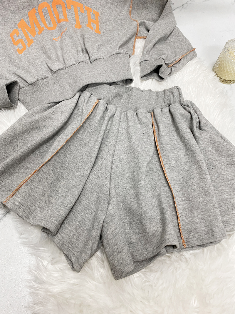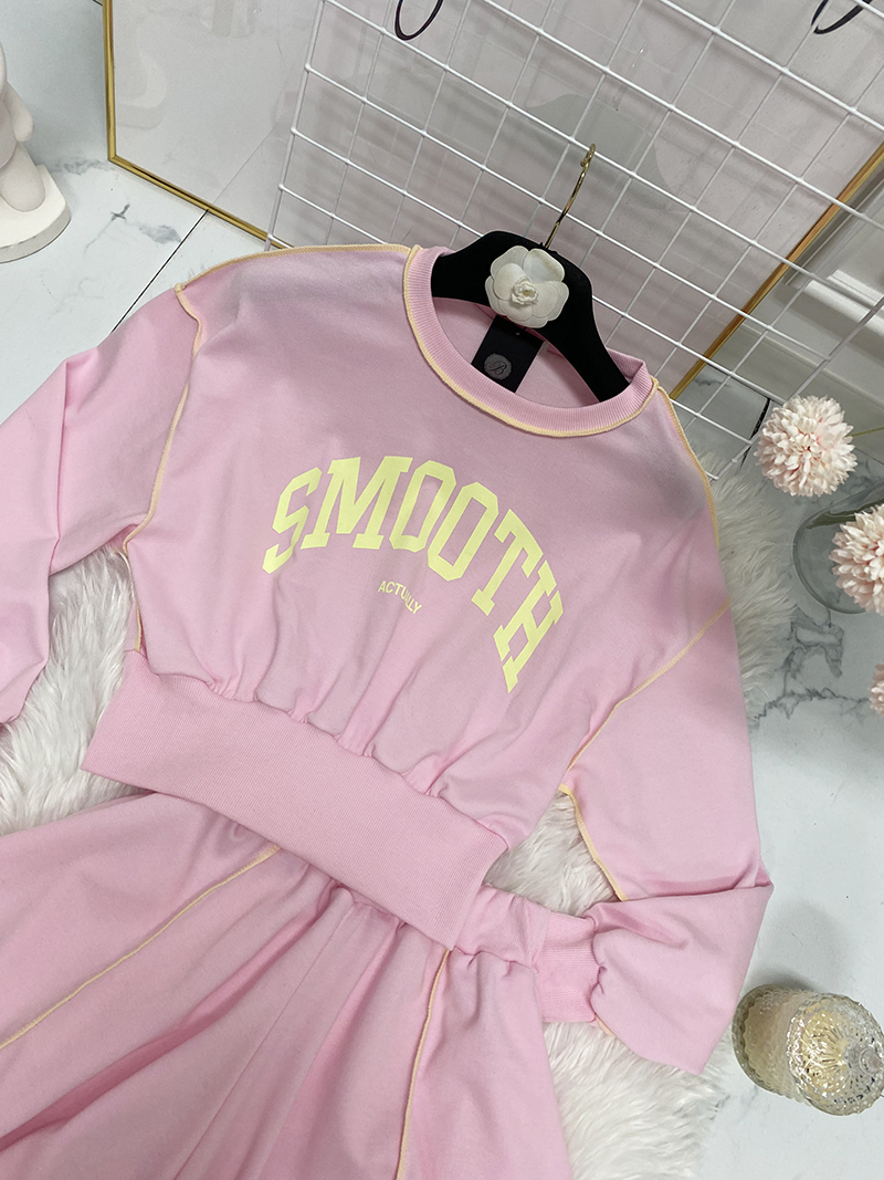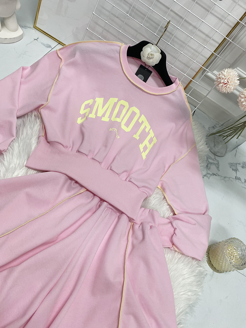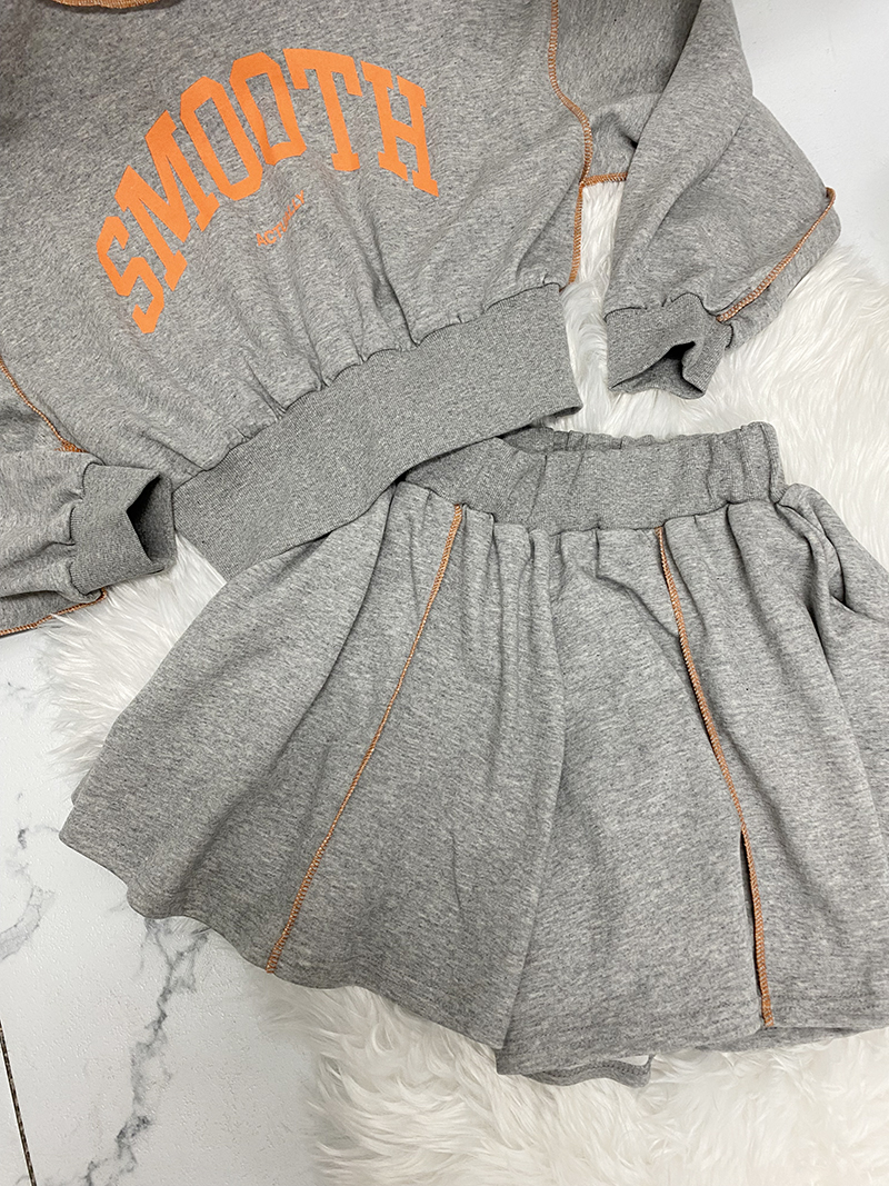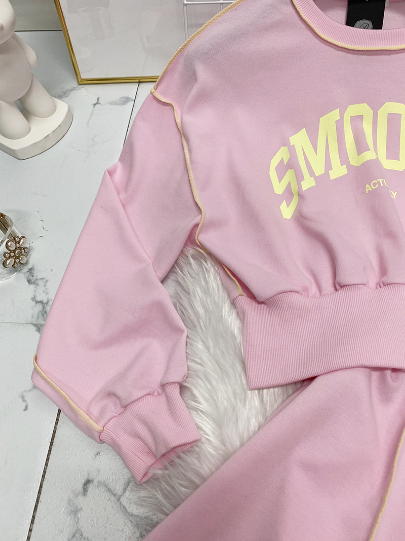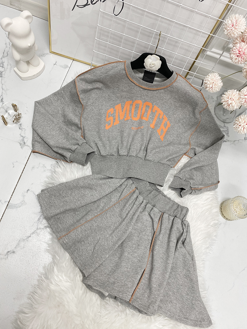 비비드 컬러 레터링 맨투맨 치마바지 세트예요.