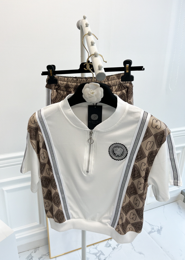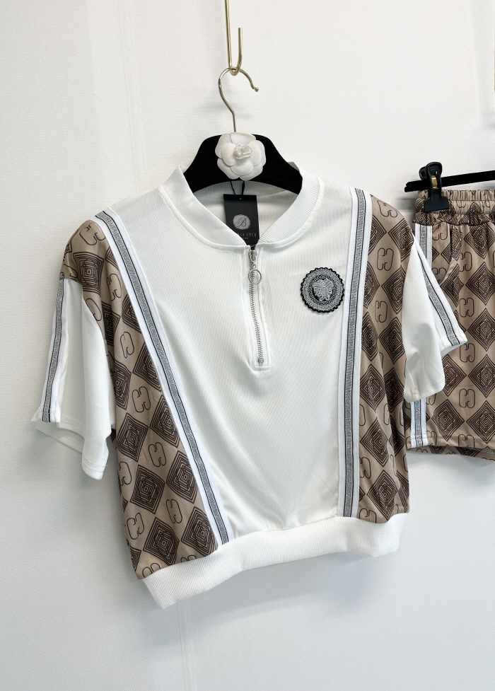 브라운톤의 고급스러운 패턴에사선 라인이 더해져입는 순간 슬림해 보이는 마법!