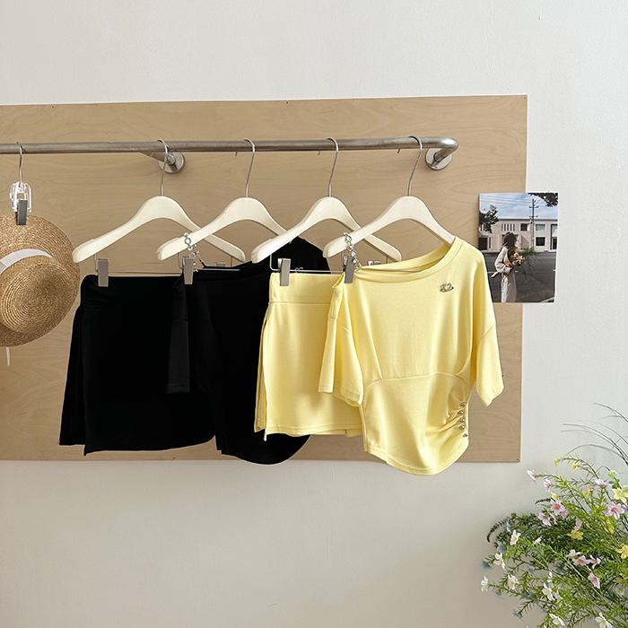 SIZE탑Free 55~66 : 가슴 94 / 소매 20 / 총길이 50 cm (M표시)스커트팬츠Free 55~66 : 허리(밴딩) 60~ / 총길이 36 cm (M표시)FABRIC폴리신축성보통 / 두께감얇음 / 비침보통드라이클리닝 권장