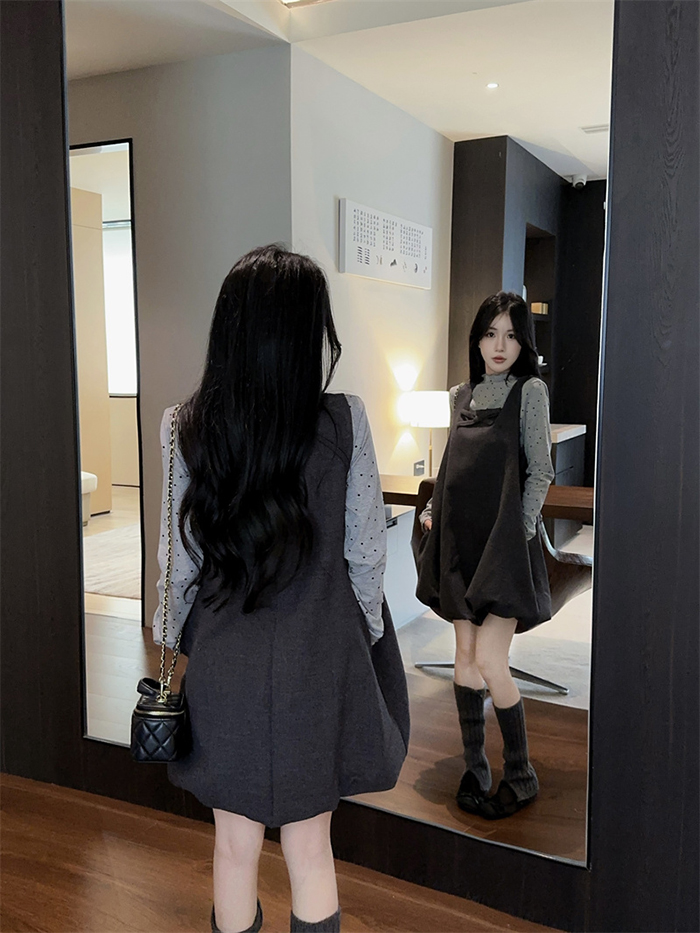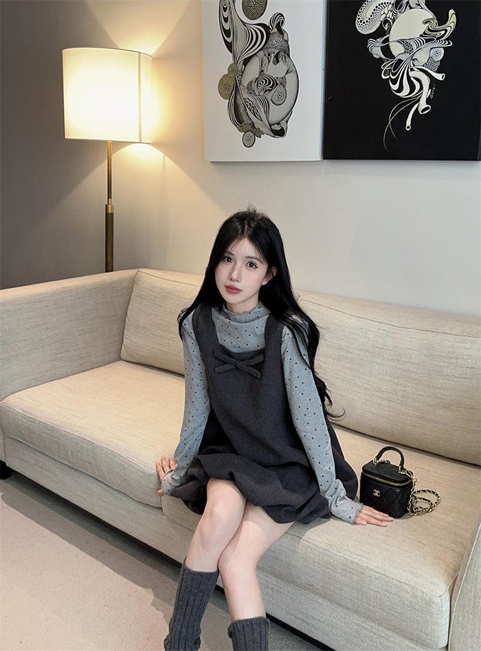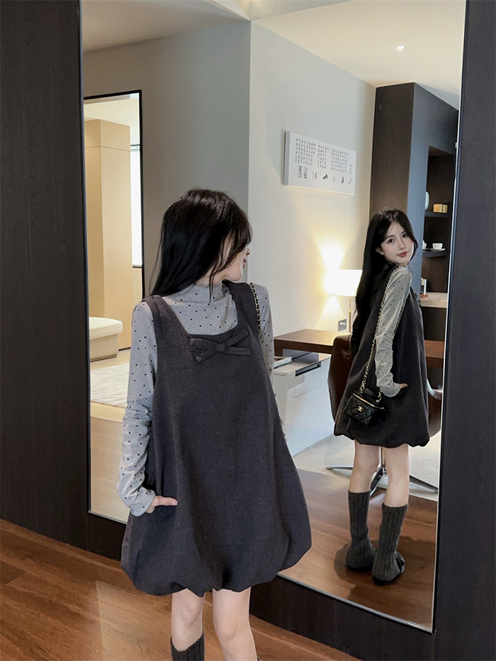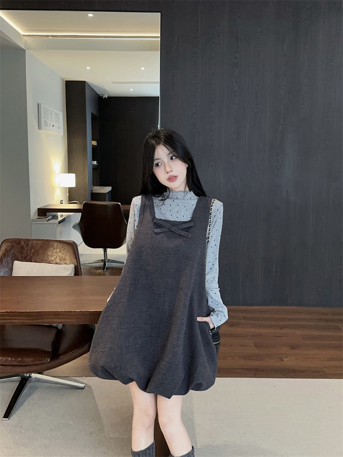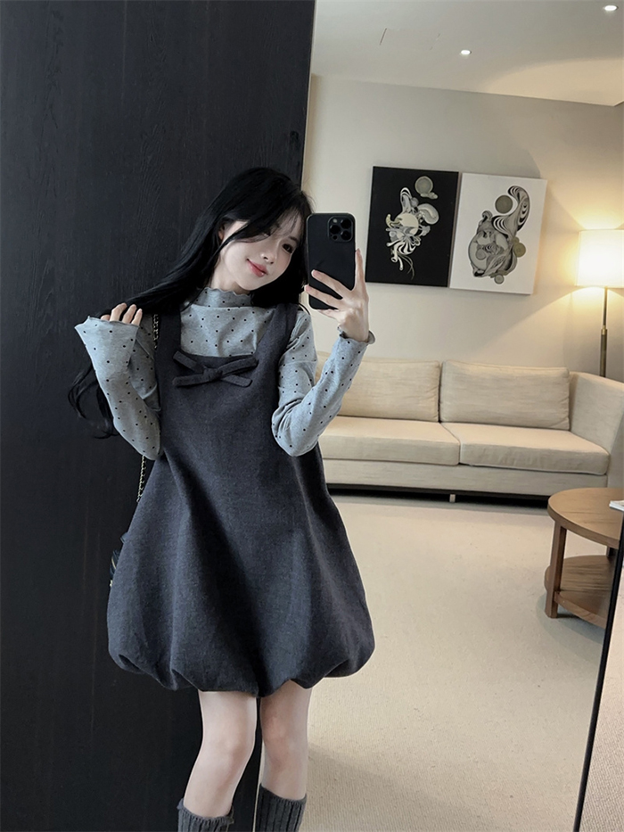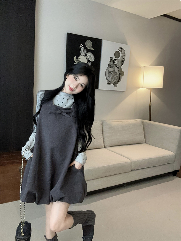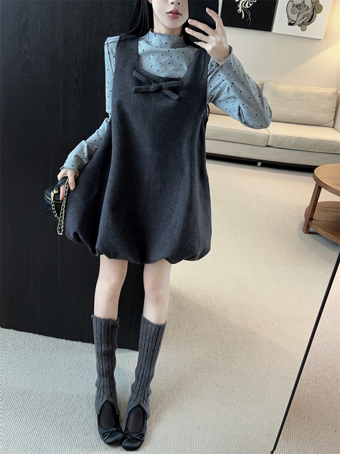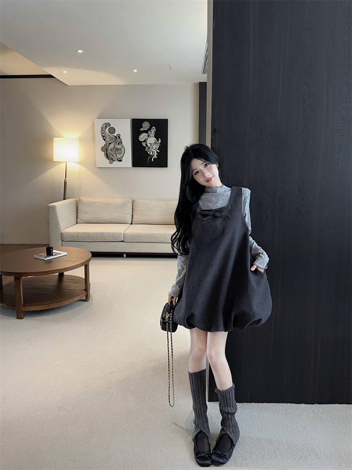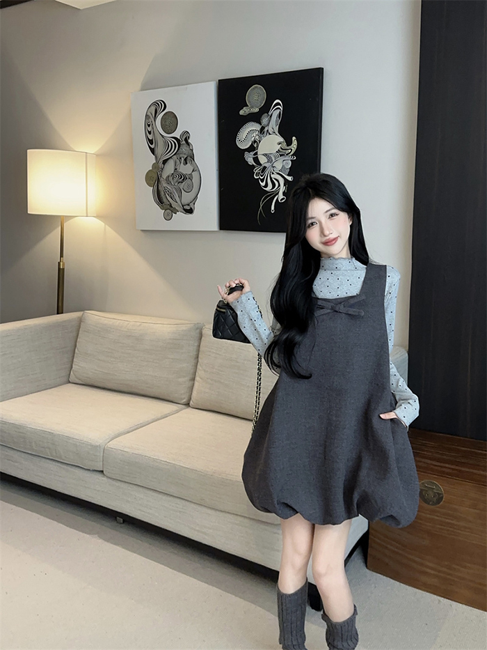 SIZE탑M 55~66 : 가슴 88~ / 소매 60 / 총길이 53 cm원피스Free 55~66 : 가슴 100 / 총길이 82 cmFABRIC폴리신축성보통 / 두께감보통 / 비침없음초반 드라이클리닝 권장