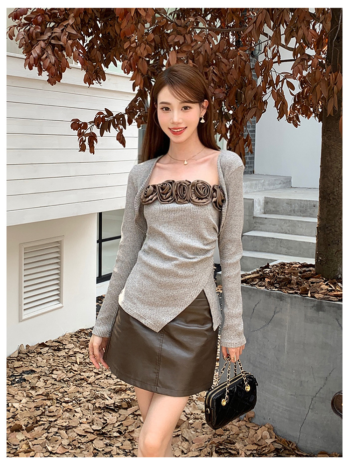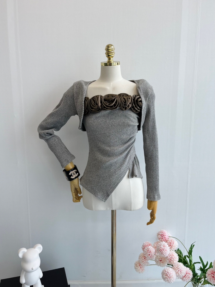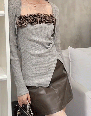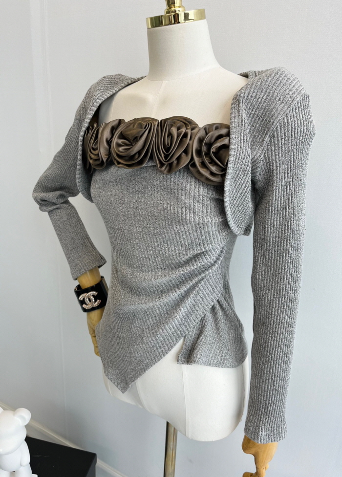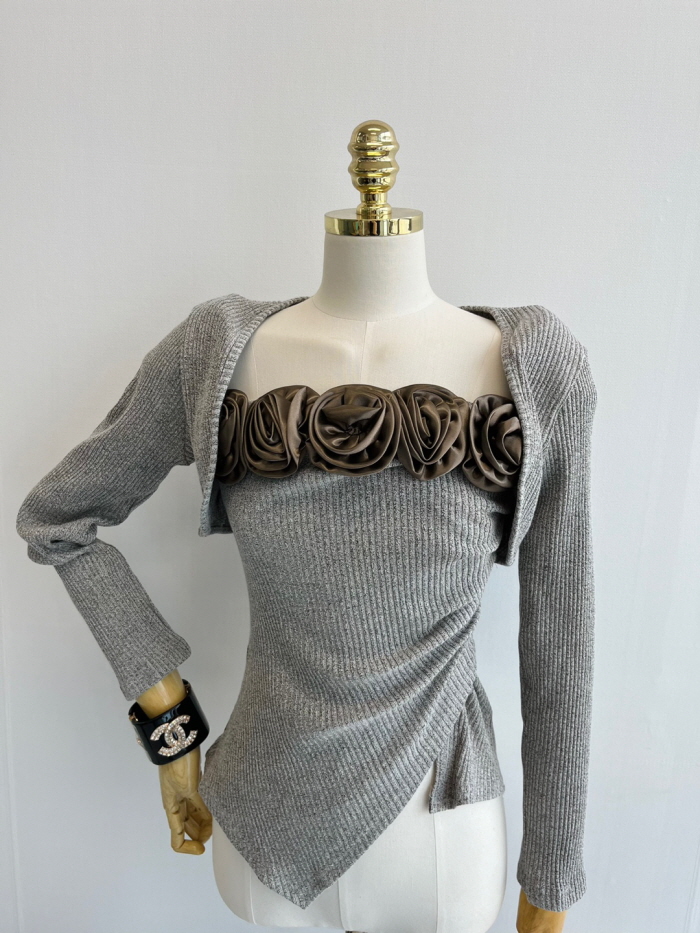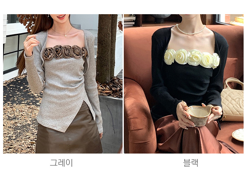 SIZE탑M : 가슴 62 / 총길이 36 cmL : 가슴 68 / 총길이 37 cm볼레로M : 가슴 84 / 총길이 25 cmL : 가슴 90 / 총길이 26 cmFABRIC폴리에스테르신축성있음 / 두께감보통 / 비침없음초반 드라이클리닝 권장